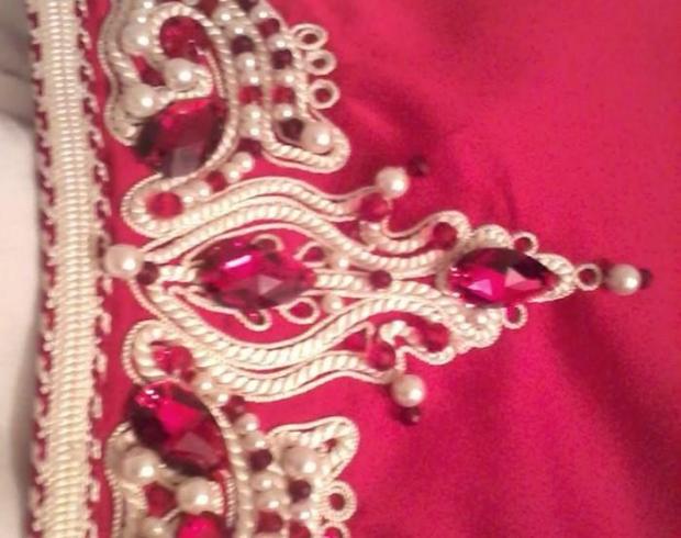 caftan rouge avec zouak en fil d'or et perles - par mouna sihammou