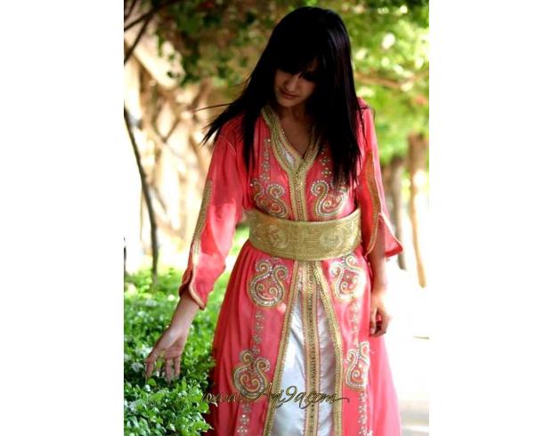 caftan rose avec ceinture en fil d'or squali