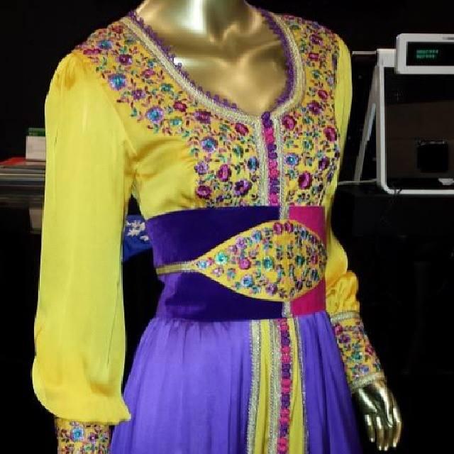 caftan jaune et violet