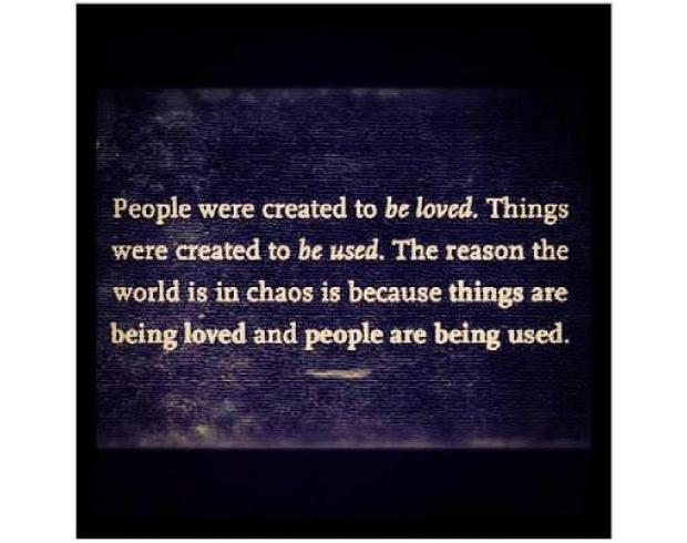 People were created to be loved. Things were created to be used. The reason the world is in chaos is because things are being loved and people are being used.
