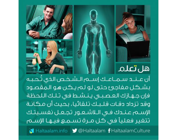 عند سماعك إسم الشخص الذي تُحبه حتى لو كان مُجرد تشابه أسماء سينشط جهازك العصبي وقد تزداد دقات قلبك تلقائياً...