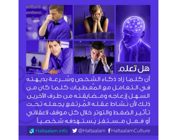 كُلما زاد ذكاء الشخص وسرعة بديهته كلما كان من السهل إزعاجه ومضايقته ...
