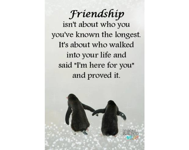 Friendship isn't about who you've known the longest. It's about who walked into your life and said "I'm here for you" and proved it. Lessons Learned In Life
